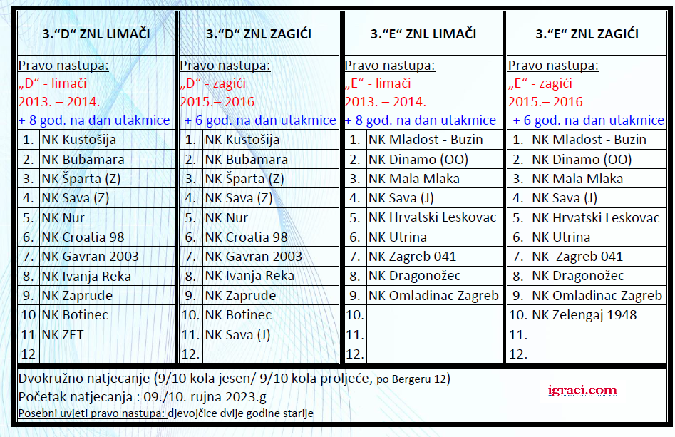 [SLUŽBENO] Sastav ZNS liga LIMAČI/ZAGIĆI 2023/24